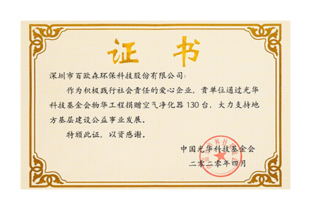 百歐森在向“智慧凈化殺菌頂級服務商"邁進的同時,本著“共同進步,共享豐盛”的理念,在發(fā)展各項業(yè)務,企業(yè)成長的同時不忘感恩員工、股東和社會大眾,公司在履行企業(yè)社會責任的道路上從未止步,在教育、環(huán)保、文化、扶貧等領域投入了真誠的關注與用心,以實際行動為公益奉獻力量,做一名優(yōu)秀的企業(yè)公民。