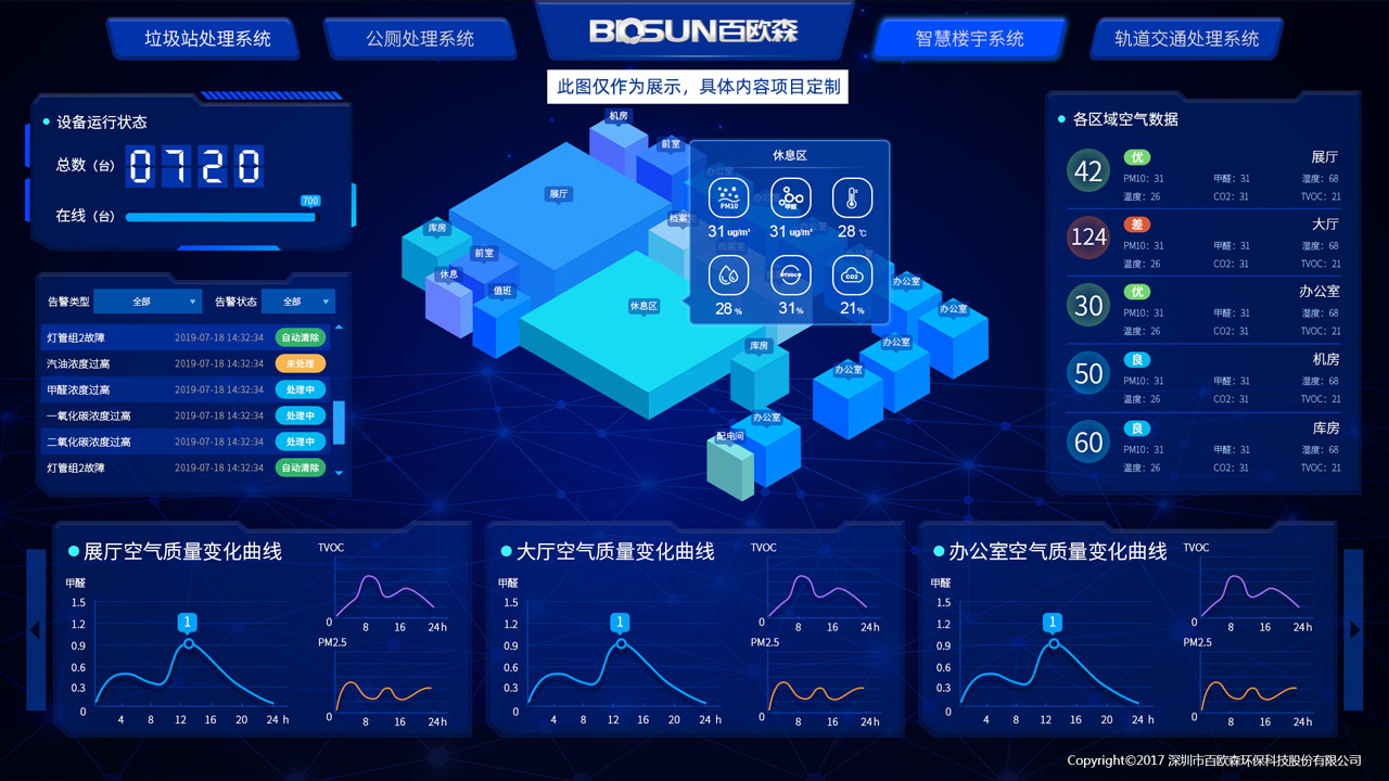 平臺研發及服務范圍包括智能終端設備研發、應用開發、云端開發、數據管理、數據運營、大數據應用、智能終端軟件開發等整條產品線的軟件開發、應用與服務。公司已研發并投入運營的產品涵蓋軌道交通智能監測、公交易燃易爆安全檢測、垃圾除臭處理、智能洗手間除臭、商業樓宇智能監測與凈化等領域,為客戶提供專業的智能化終端產品及全天候數據管理與運營服務。