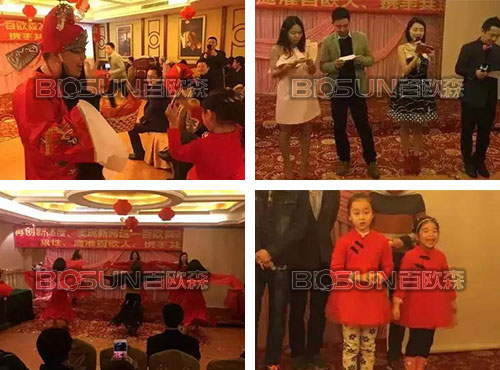 2016年年會狂歡于當天20點準時開始。每一位到場朋友的臉上都洋溢著難以掩飾的幸福笑容,此次年會更是不斷出現優異節目,引來持續不停的吶喊聲,為全場帶來一次又一次的高潮。2016年將是傳承夢想不懈求索的一年;也是繼往開來搶抓機遇的一年,我們堅信:百歐森一定能夠銳意進取、整裝待發、挑戰極限,為更好的未來而繼續奮斗!